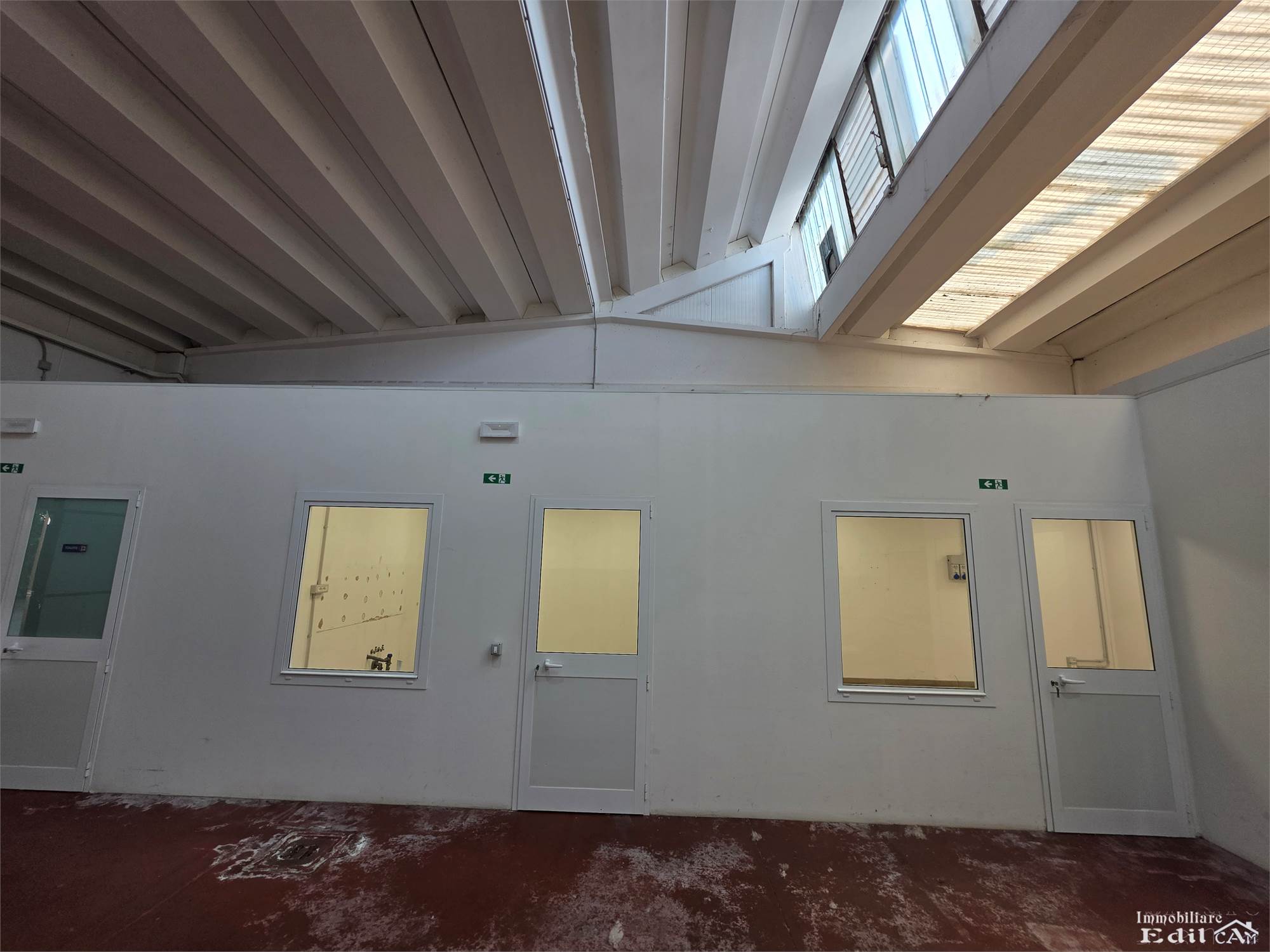 in posizione comoda alle Tangenziali proponiamo Capannone di 150 mq. in ottimo stato con Altezza sotto trave 7 mt.; dispone di numero tre uffici gia' suddivisi con pareti attrezzate e finestrati; riscaldamento e raffrescamento all'interno di ognuno di essi, cucina, bagno per disabili, impianto di allarme.